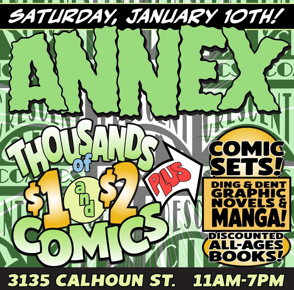Crescent City Comics has thousands of $1 comics, and a good selection of discounted collected editions for sale on 1.10! Sometimes there’s even a box of toys out on a table or two. I try to go to each one of these they put on and then stop for coffee across the street. They have a handful of these sales a year! Check it out before the good stuff is gone!