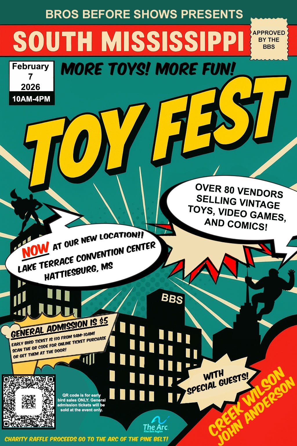South Mississippi Toy Fest is back at an all-new location for another event on 2/7. This event has some really great vendors and wonderful people, despite the ai “art” used in the flyer. Check it out if you can make the drive up to Hattiesburg, and go ask them about why they used ai art here