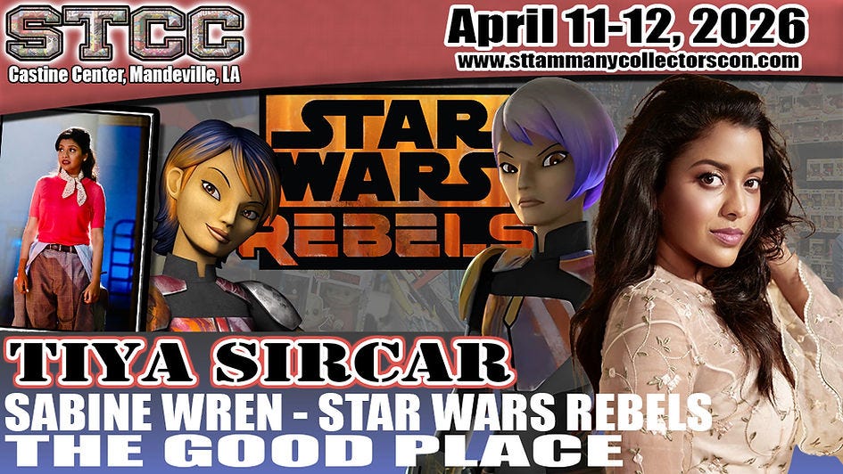 Alright folks, this is the big one. Twice a year, the St Tammany Collectors Con puts together the best convention in the state. They cater to the vendors and collectors, and each year it gets bigger and better. They just announced that Tiya Sircar, voice of Sabine Wren will be attending. Cool! If you go to one collecting event a year, make it this one! Be sure to make it to Mandeville on 4/11-12